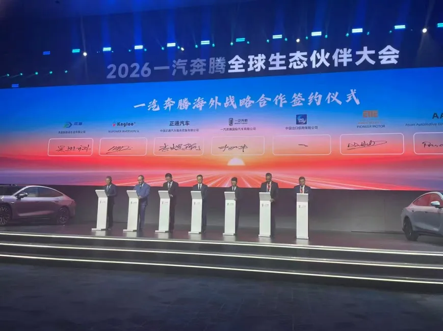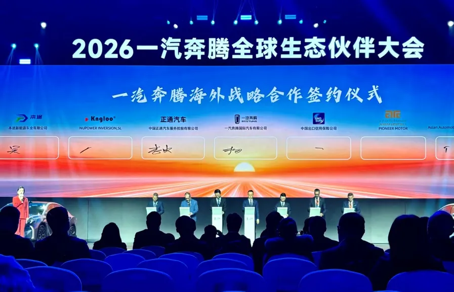 ในวันที่ 4 กุมภาพันธ์ 2026 FAW Bestune Global Eco-Partner Conference จัดขึ้นที่เมืองฉางชุน มณฑลจี๋หลิน ในฐานะหนึ่งในพันธมิตรเชิงกลยุทธ์หลักในต่างประเทศ นายวู ประธานของมณฑลซานตง Bentu ใหม่พลังงานยานพาหนะ Co., Ltd.ได้รับเชิญให้เข้าร่วมและลงนามในสัญญาการปรับปรุงและการขายเกี่ยวกับยานพาหนะที่เป็นไปตามมาตรฐานยุโรปกับ FAW Bestune ในนามของบริษัท นี่เป็นก้าวสำคัญสำหรับ Shandong Bentu New Energy Vehicle Co., Ltd. ในการขยายตลาดยุโรป และเริ่มต้นการเดินทางครั้งใหม่ในการพัฒนาระดับนานาชาติ